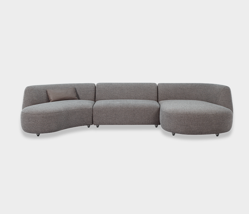 Featuring enveloping curves and generous proportions, this sofa offers a contemporary concept that highlights sculptural design and ultimate comfort. The soft gray upholstery adds sophisticated neutrality, while the continuous seat and backrest create a fluid, inviting silhouette. Perfect for spacious interiors, social areas, or statement compositions with timeless elegance.