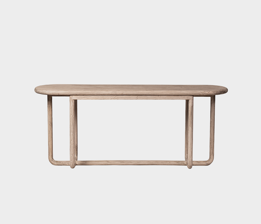 With soft lines and architectural presence, this console features a contemporary design with sculptural appeal. The oval wooden top is paired with a symmetrical, rounded-leg base, offering a sense of visual lightness, flow, and sophistication. A statement piece, ideal for entryways, living rooms, or gallery-like spaces with a focus on elegance and originality.
