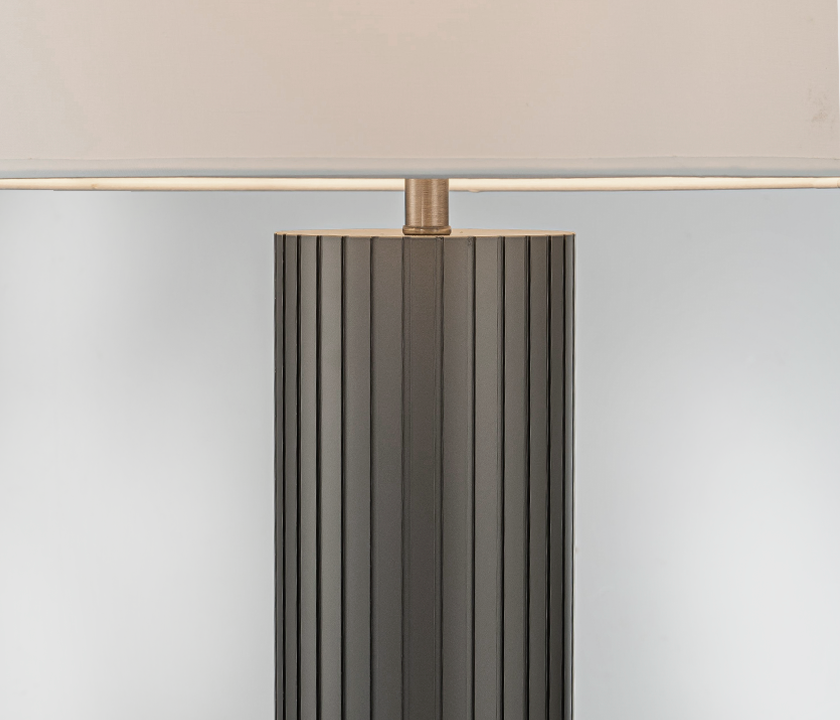The Cairo Table Lamp features a clean, architectural silhouette that blends modern simplicity with subtle contrast. Its slim black metal base supports a soft white linen shade, creating a timeless pairing ideal for contemporary interiors.