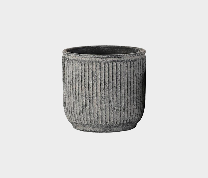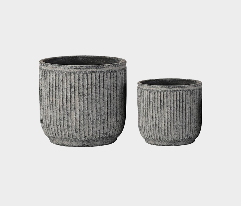 Add structure and texture to your space with this set of ribbed cement planters from Famous Haus. Featuring a vertical grooved pattern and a matte gray finish, these cylindrical flowerpots are crafted from sturdy cement, offering both durability and visual appeal. Perfect for displaying leafy greens or floral arrangements, the design complements modern, industrial and organic decor styles. Available in two sizes, these planters can be styled together or separately to elevate any room or patio.