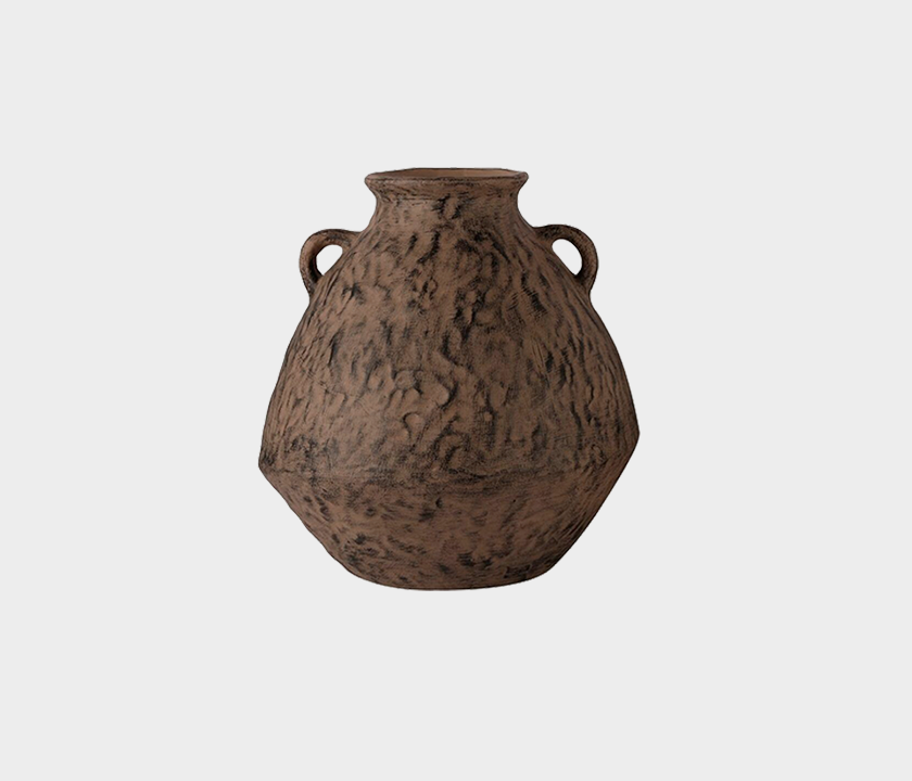 This handcrafted ceramic vase draws inspiration from ancient amphoras, reimagined with an organic twist. Featuring a rich, earthy brown finish and heavily textured surface, it brings depth and character to any setting. The double handles add functionality and sculptural charm, making it ideal for rustic, bohemian or artisan-inspired interiors. Perfect as a standalone accent or to hold dried florals.