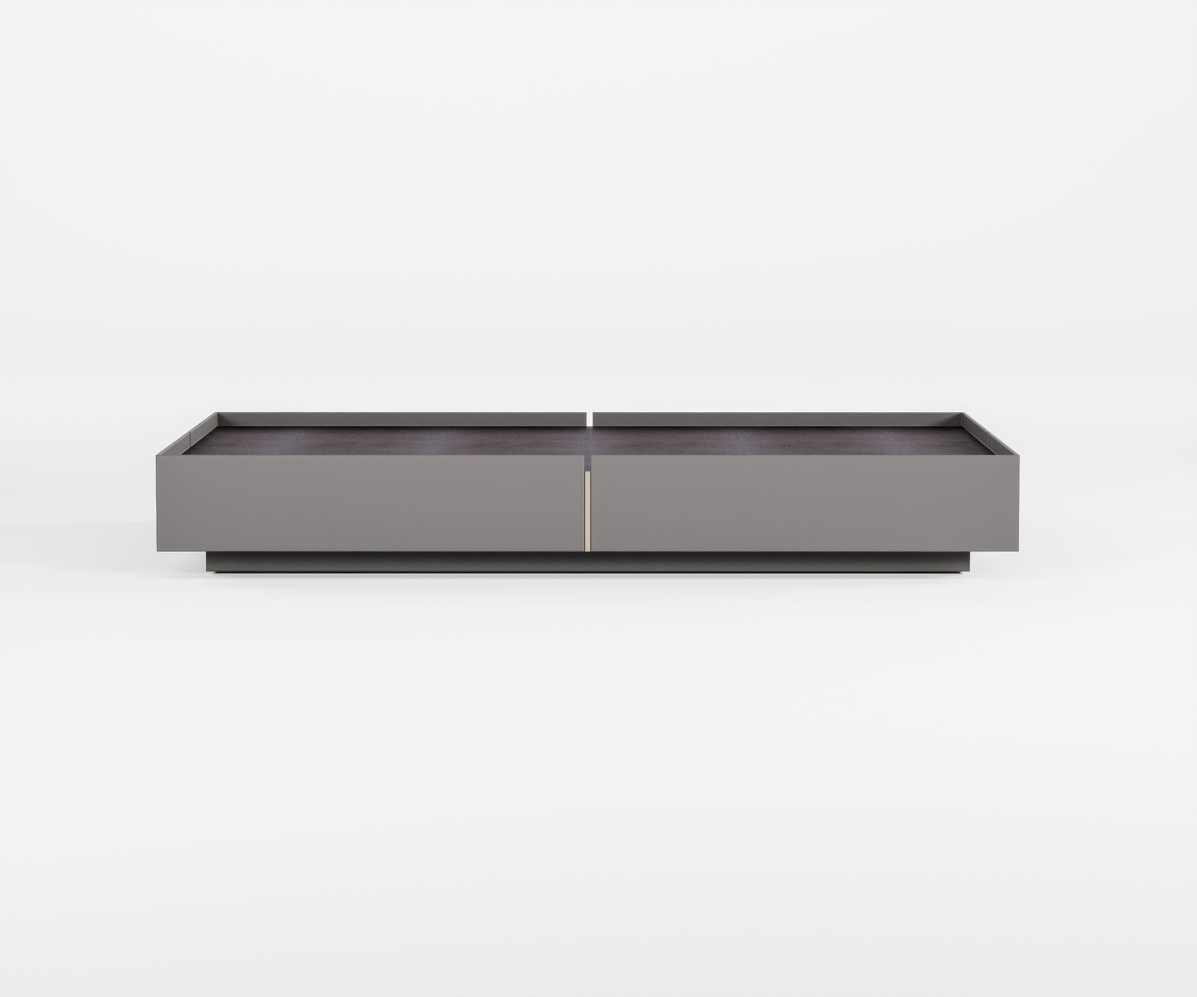 Minimalism refined to its purest form; this coffee table captures the essence of modern sophistication. Its broad, low silhouette is defined by clean architectural lines and a seamless matte-lacquer finish. A subtle metal inlay at the center adds a whisper of elegance, balancing restraint with detail.