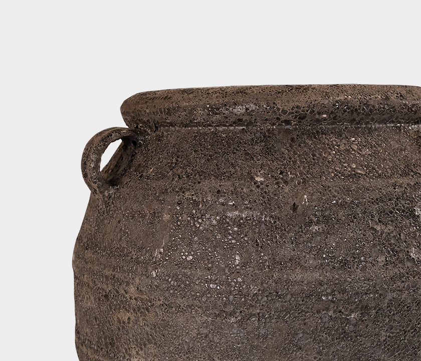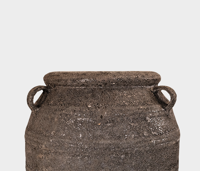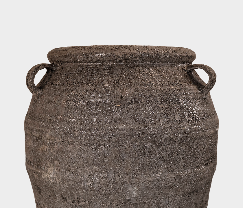 Elevate your space with this handcrafted ceramic amphora vase, standing at an impressive 44 inches tall. Featuring a rustic brown finish and side handles, it brings organic texture and monumental presence to interiors or covered patios. Ideal as a floor piece or as a sculptural statement in entryways and living rooms. Each piece is uniquely textured and made to stand out.