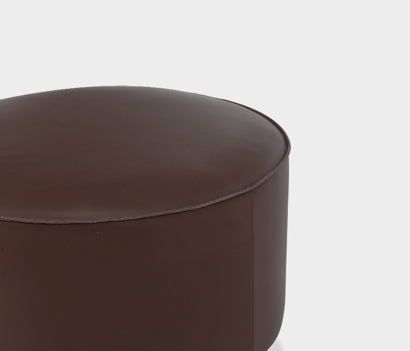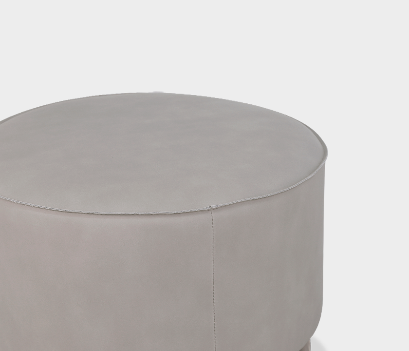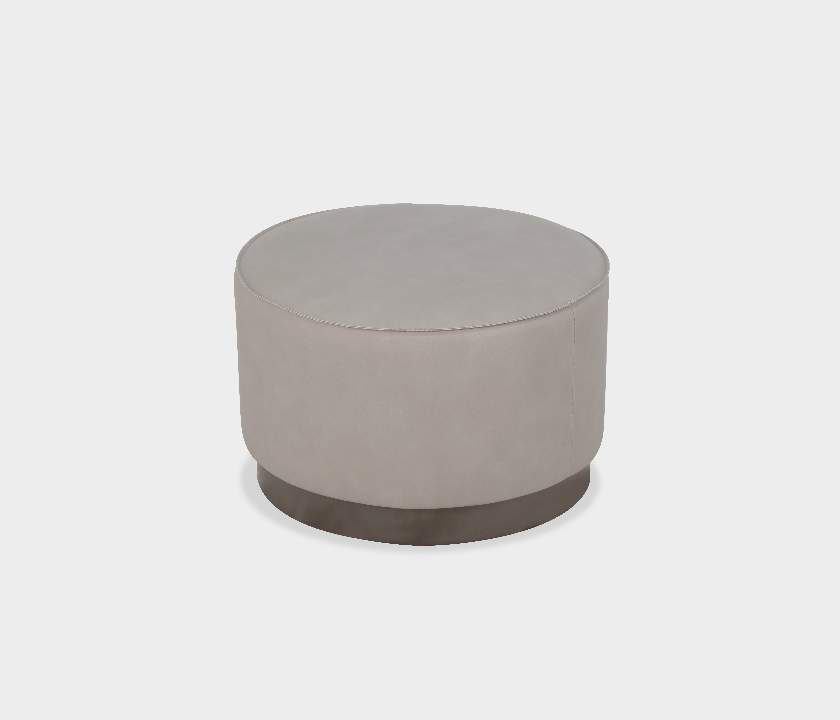 Sophisticated and versatile, this round ottoman is upholstered in smooth leather with a refined finish. Its compact form and light structure make it ideal as a footrest, extra seat, or decorative accent in both social and private settings. The subtly recessed base enhances the piece's clean, timeless design.