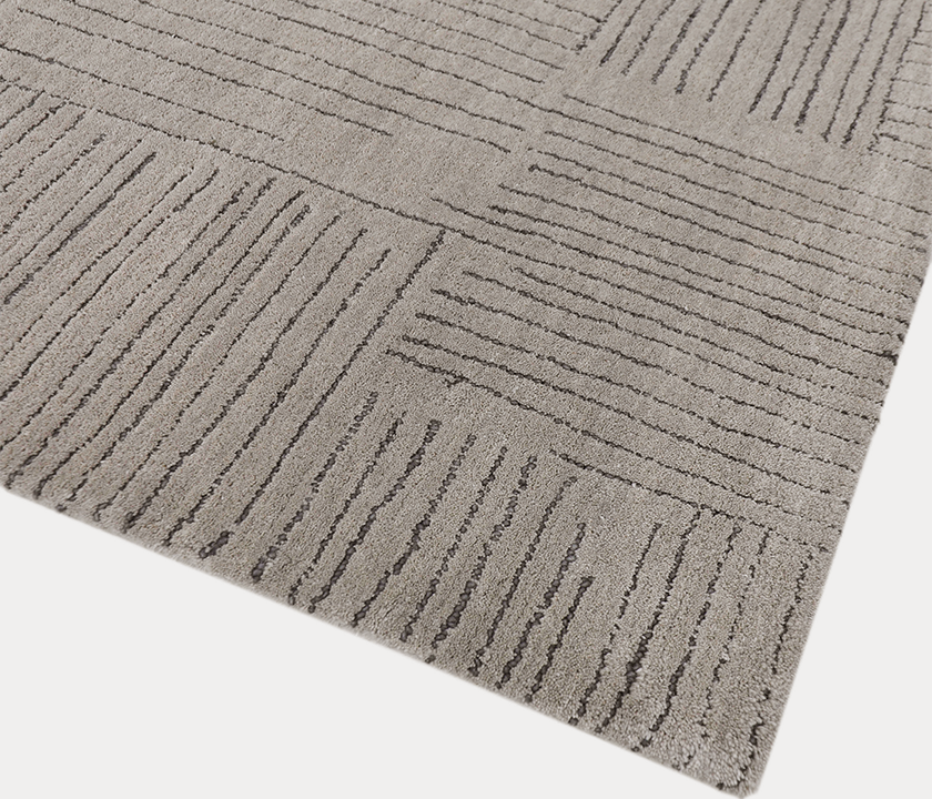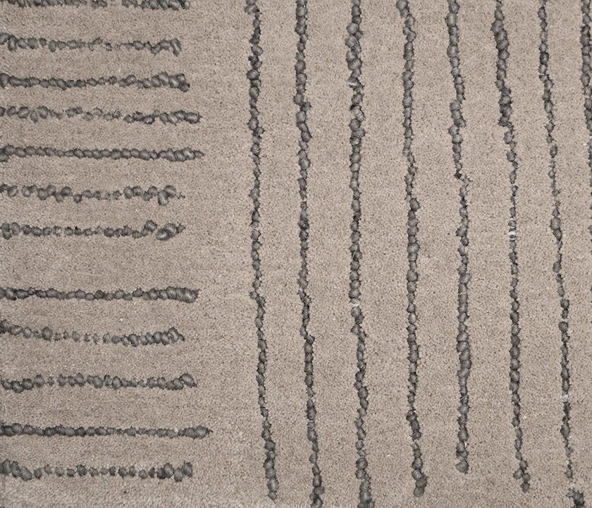 100% wool rug in cappuccino tone. Hand-knotted with dense, soft texture, eco-dyed, hand-bound edges and ½" fringe. Ideal for modern interiors.