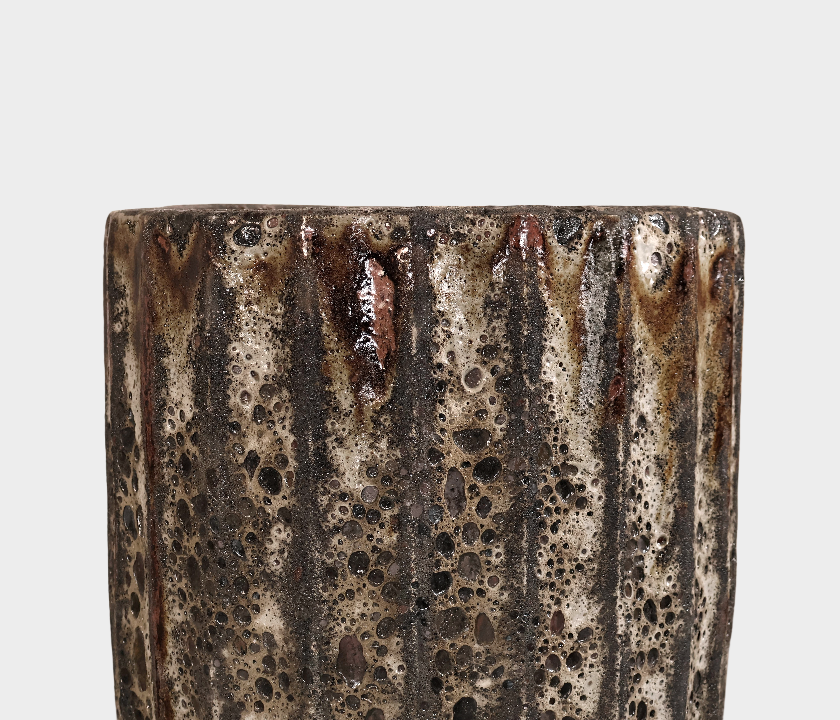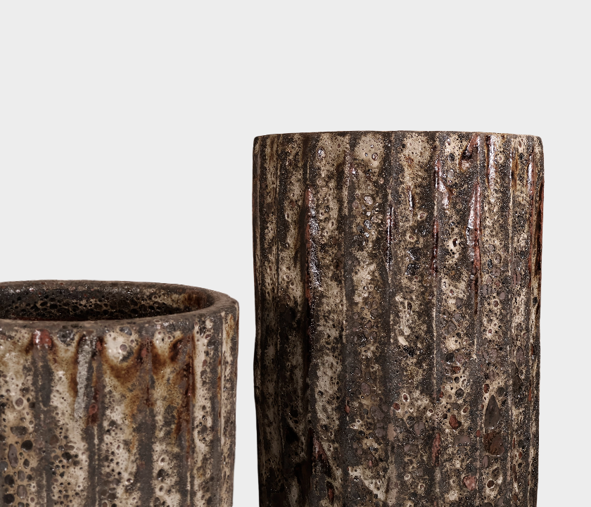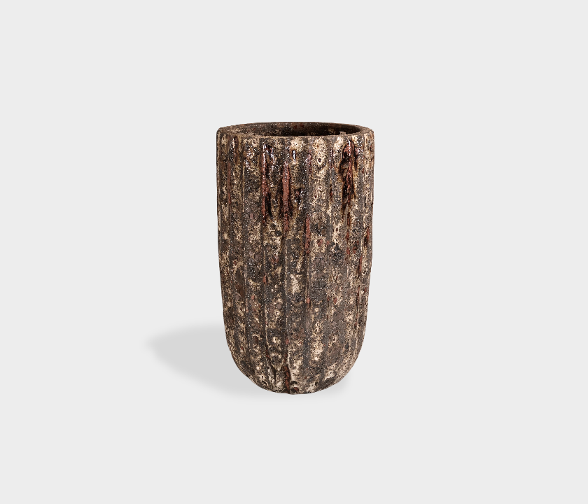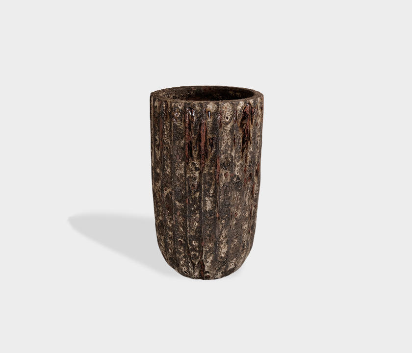 Bring rustic charm and bold texture to your decor with this tall ribbed ceramic planter. Featuring deep vertical grooves and a hand-applied aged finish, this pot delivers earthy elegance and visual interest in any indoor or outdoor space. Each piece is unique, and available in three distinct sizes for versatile styling.