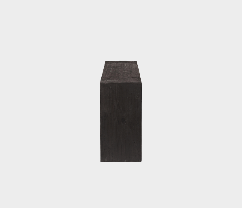 Bold and elemental, this console is crafted entirely from wood with a natural finish that highlights knots, textures, and the organic character of the material. Its block-like, monolithic form creates a sculptural presence — perfect for contemporary settings that appreciate pure shapes and raw authenticity. A piece that merges visual strength with organic sophistication.