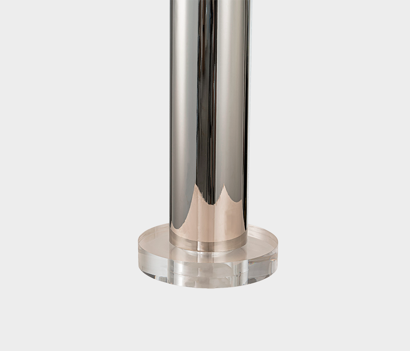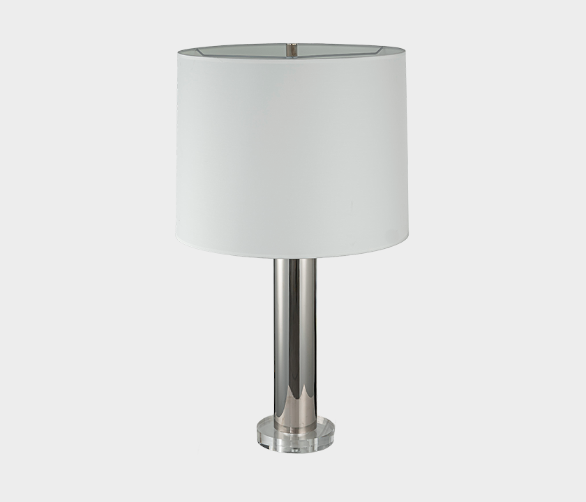 The New York Table Lamp in Satin Nickel brings urban elegance to your interior. Its refined base, a fusion of polished metal and acrylic crystal — provides a clean, structured aesthetic that pairs beautifully with its crisp white linen shade.