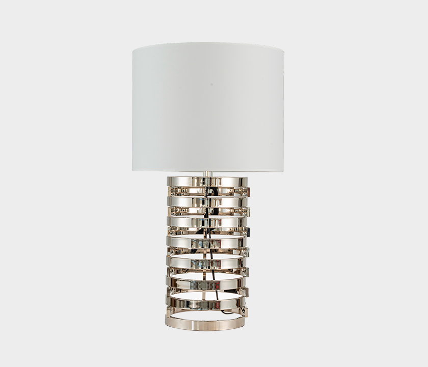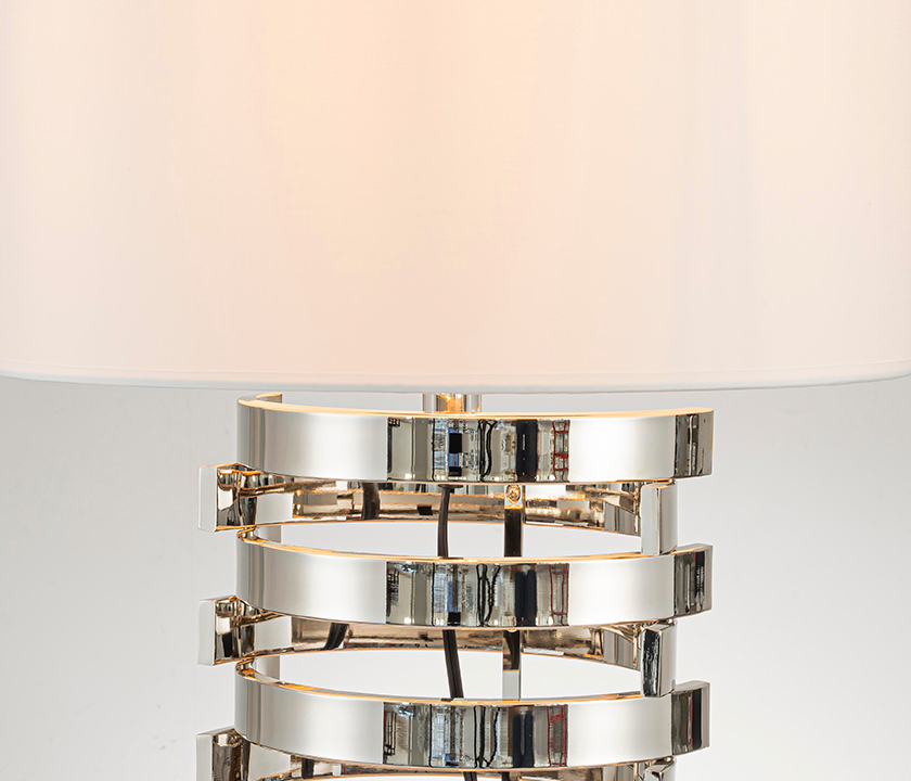 • Made of metal with a linen fabric shade