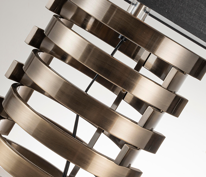 • Made of metal with a linen fabric shade