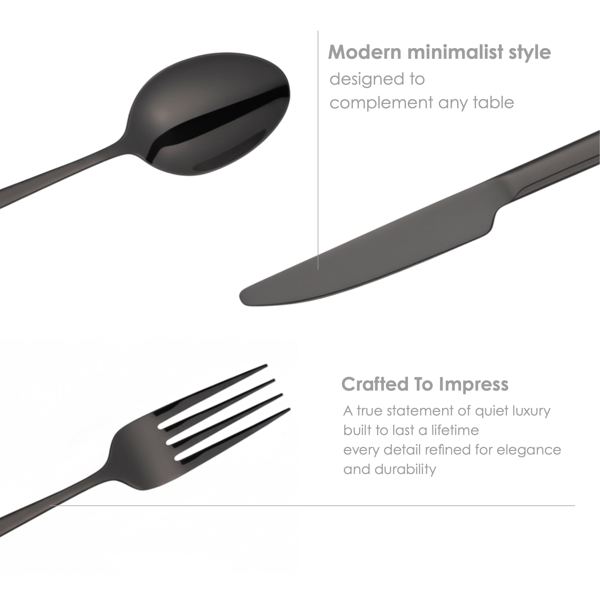 Introducing the 30-Piece Flatware Set in a sophisticated black finish — a precise blend of contemporary design and functional excellence. Perfectly suited for both everyday use and special occasions, this set brings understated elegance to modern table settings.