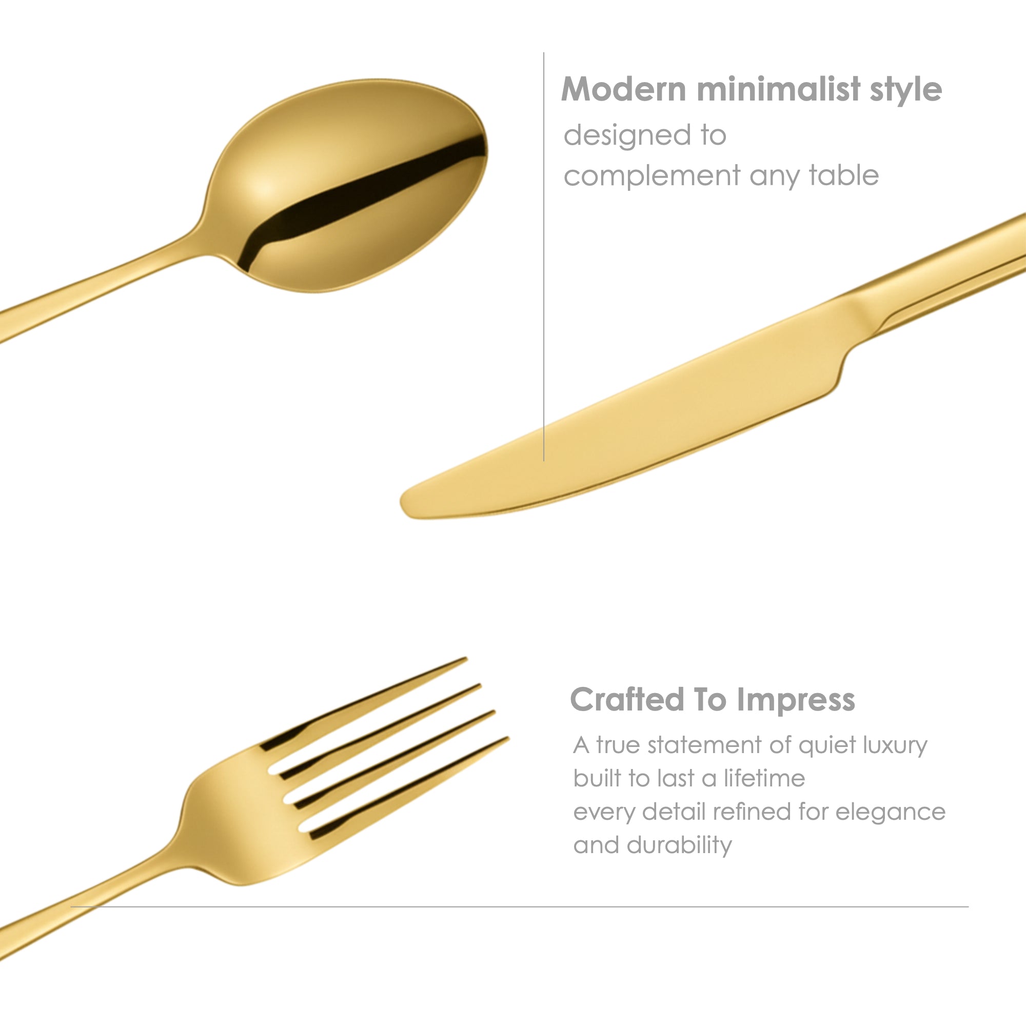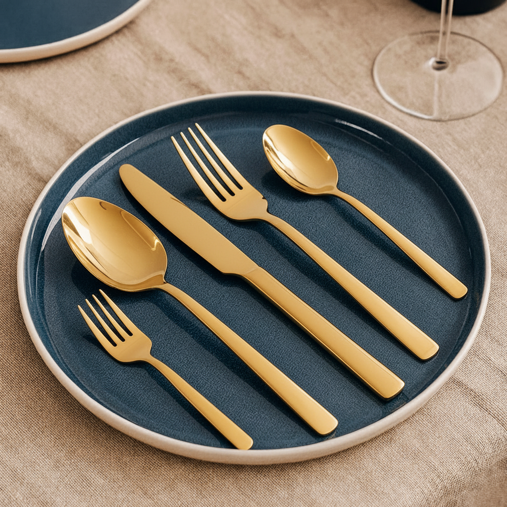 Introducing the 30-Piece Flatware Set in a sophisticated champagnet gold finish — a precise blend of contemporary design and functional excellence. Perfectly suited for both everyday use and special occasions, this set brings understated elegance to modern table settings.