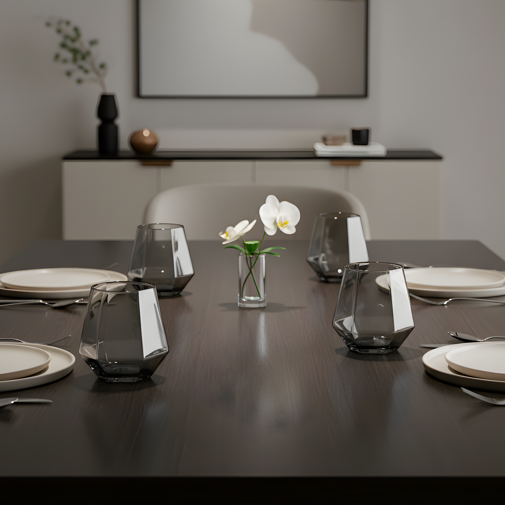 Blending contemporary aesthetics with geometric precision, the Prism Glass Set in smoked is a sophisticated expression of functional design.