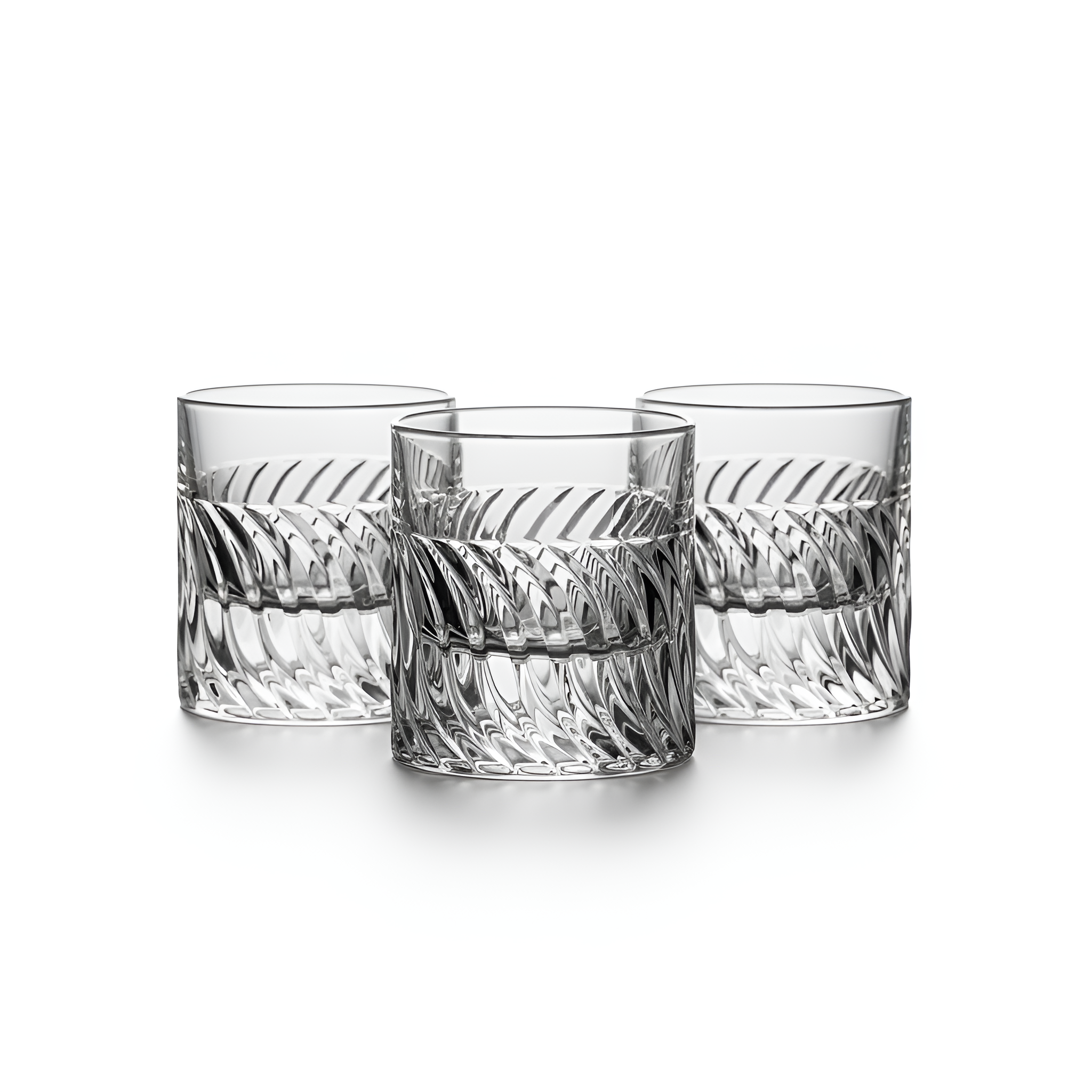 Elevate your bar experience with this Set of 6 Spiral-Cut Crystal Whiskey Glasses, crafted from high-clarity, lead-free crystal.