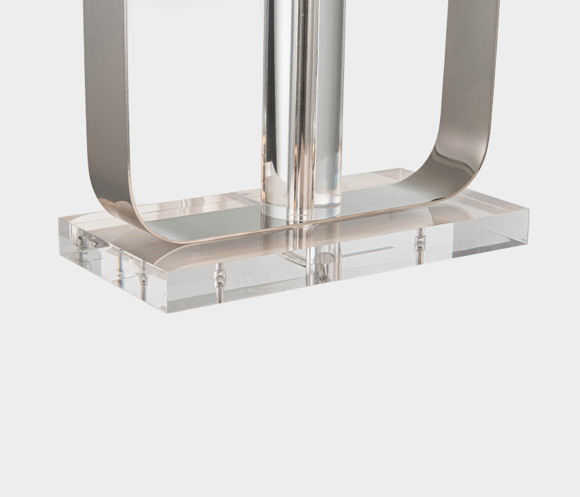 The Seul Table Lamp brings architectural simplicity and sculptural balance to your space. Featuring a polished metal stem anchored by a crystal-clear acrylic base, its structure is both light and refined. The clean lines are complemented by a soft white linen shade that diffuses warm ambient light.