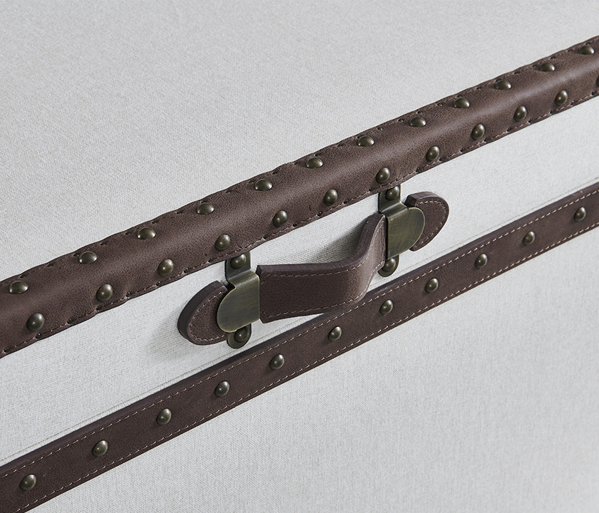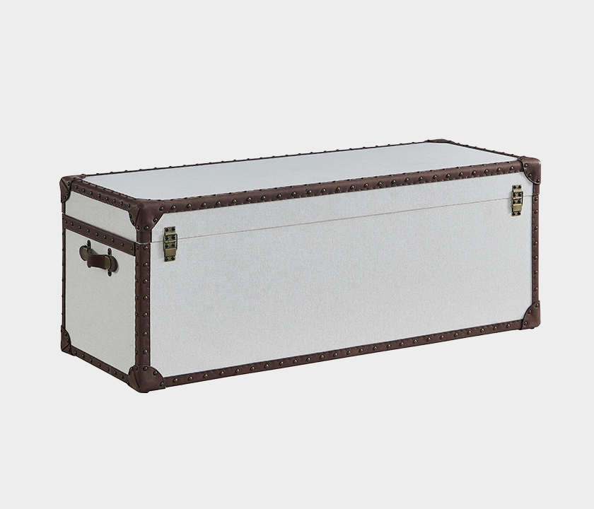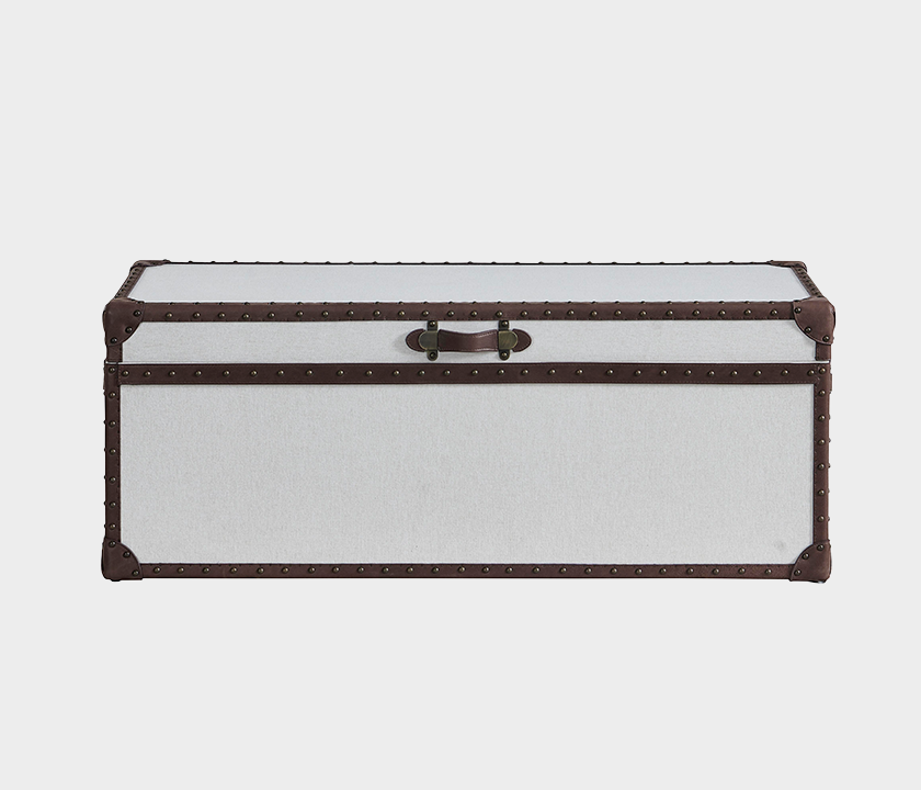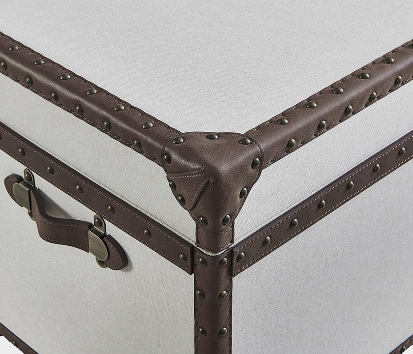 Featuring a classic silhouette and refined finish, this trunk combines light fabric panels with leather trim and aged metal hardware. A versatile piece that serves both as stylish storage and a decorative accent — perfect for interiors that value authenticity and timeless elegance.