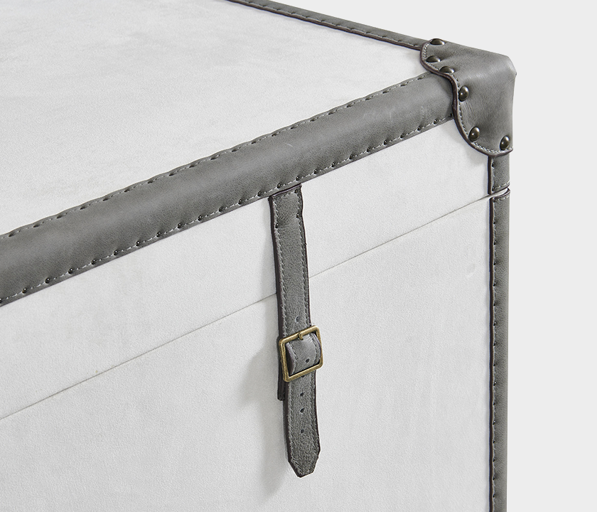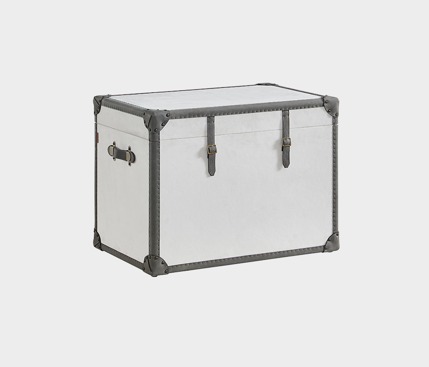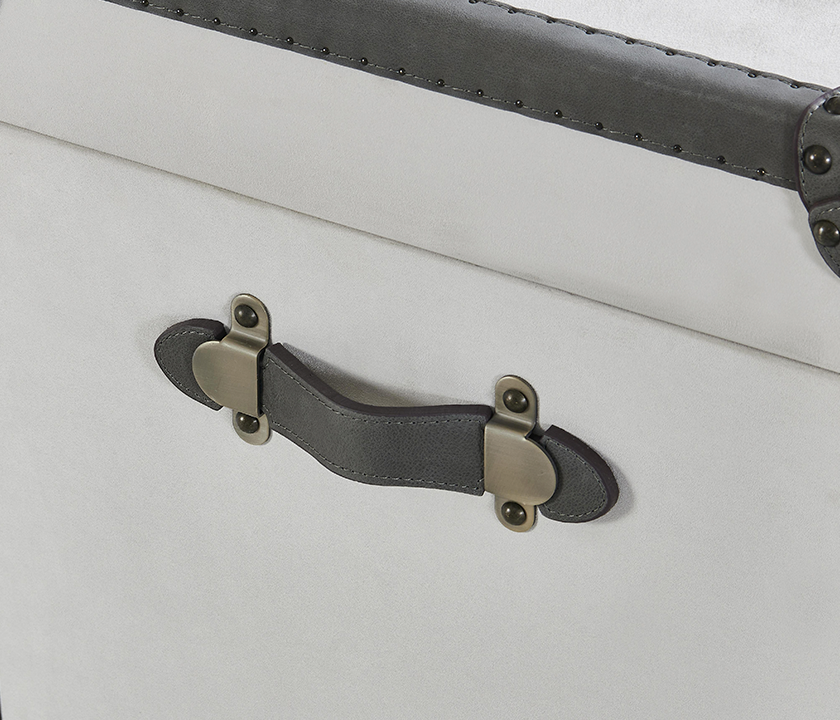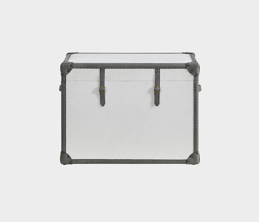 Featuring a classic silhouette and refined finish, this trunk combines light fabric panels with leather trim and aged metal hardware. A versatile piece that serves both as stylish storage and a decorative accent — perfect for interiors that value authenticity and timeless elegance.