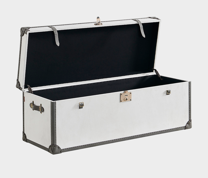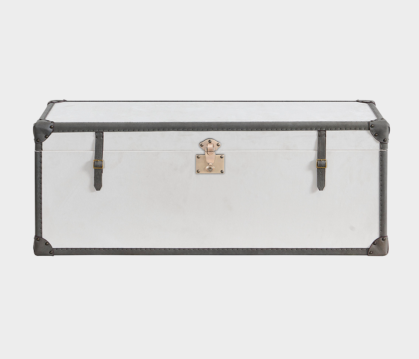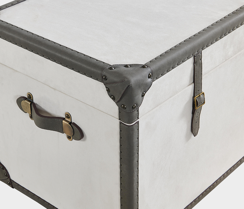 Featuring a classic silhouette and refined finish, this trunk combines light fabric panels with leather trim and aged metal hardware. A versatile piece that serves both as stylish storage and a decorative accent — perfect for interiors that value authenticity and timeless elegance.