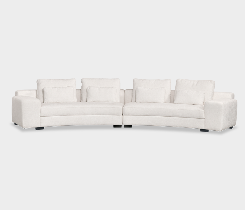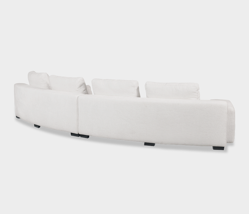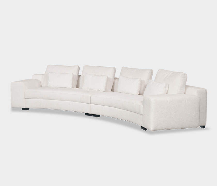 Timeless elegance meets enveloping comfort in this curved sofa, where classic lines are reimagined through a soft and flowing composition. The high back with loose cushions ensures ergonomic support, while the curved shape encourages spatial interaction. Upholstered in fabric, it’s ideal for spacious living rooms, social lounges, or refined corporate interiors.