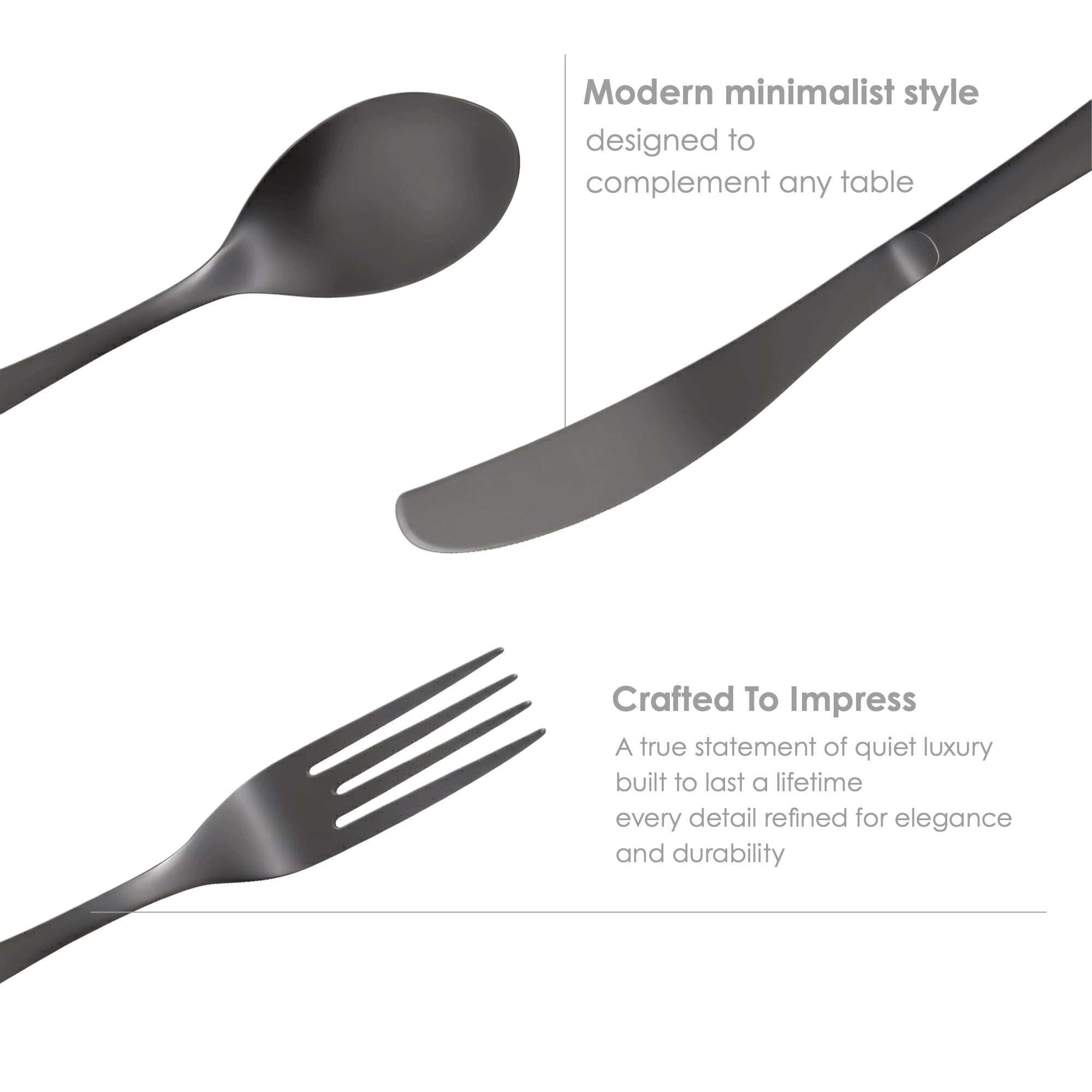 Introducing the 30-Piece Flatware Set in a sophisticated matte black finish — a precise blend of contemporary design and functional excellence. Perfectly suited for both everyday use and special occasions, this set brings understated elegance to modern table settings.